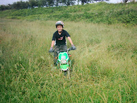 He challenged me that if he can pop a wheelie and put the front tire over his junk pile that I'll treat him sushi for lunch. He was able to do it so he now he is showing how a man he is... hahaha!